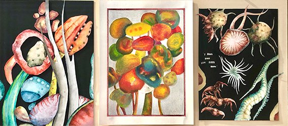 Créations réalisées par les adultes de la ville de Rezé lors des ateliers mensuels au CSC Jaunais Blordière.