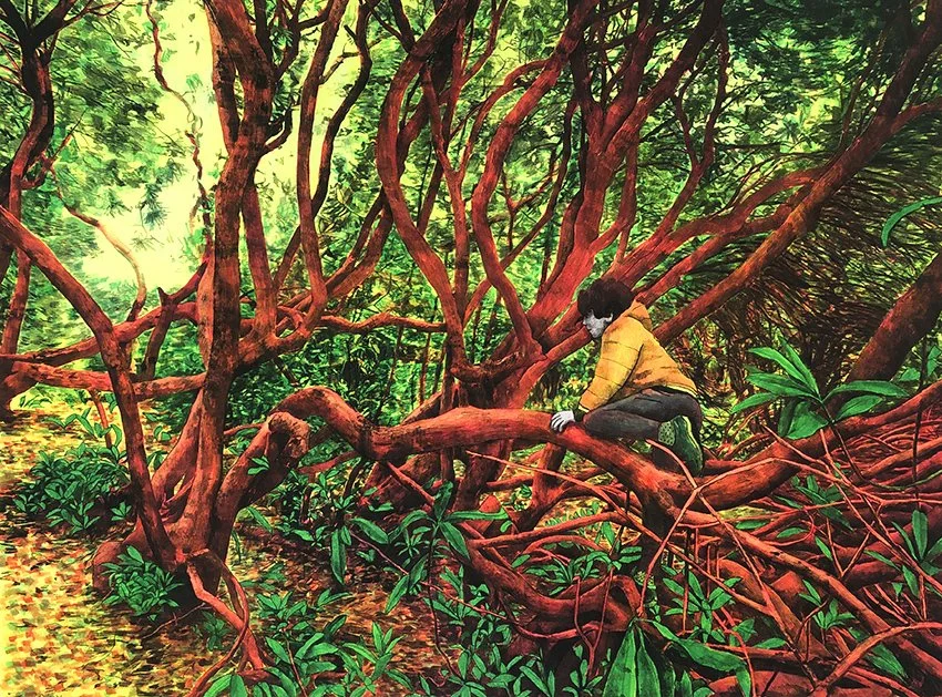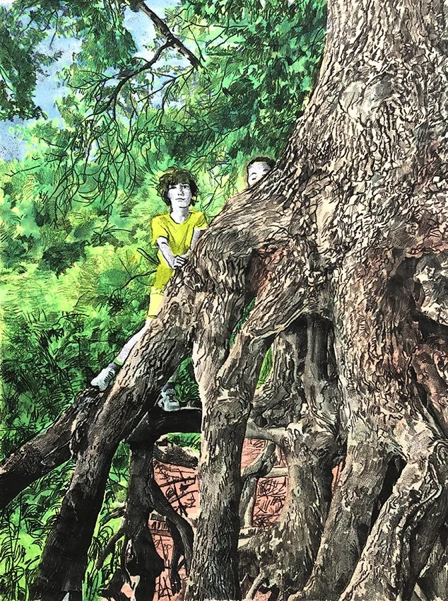 Une série où des enfants déambulent dans une nature vierge de toute intervention humaine. Et notamment, un élément de nature primitif et indispensable : l’arbre. Cet environnement devient le terrain de jeu favori des enfants : pourtant, rien de superficiel. Juste une matière à toucher, escalader, grimper, éviter, sauter, accrocher, sentir… C’est inévitable : un arbre, un enfant et l’envie irrépressible de monter dedans.